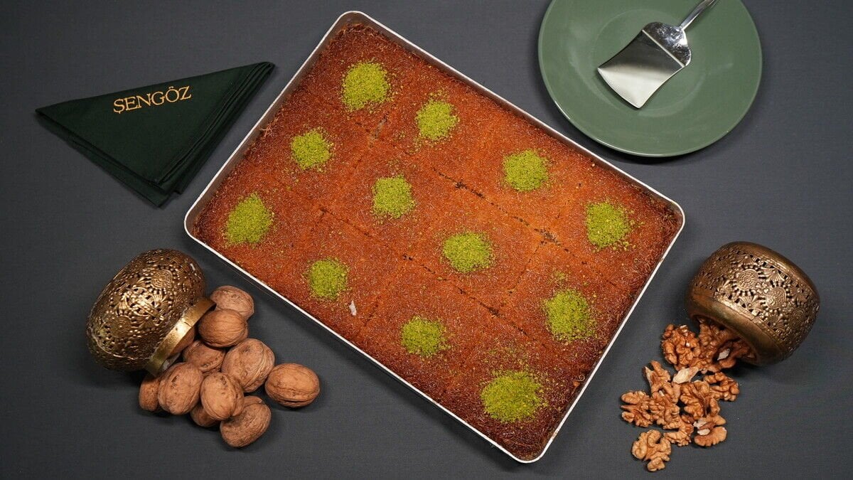 Tel tel ayrılan çıtır kadayıfın içindeki ceviz dolgusu, her lokmada geleneksel tatların ustalıkla modern bir yoruma dönüştüğü bir deneyim sunar. Şerbet dengesi ve ceviz aromasıyla tam bir çay saati klasiği.