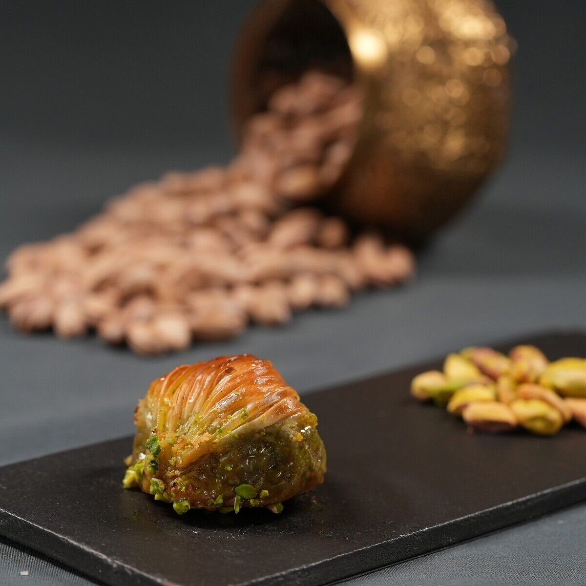 Şekliyle göz kamaştıran, içeriğiyle lezzet şöleni sunan bir sanat eseri. Dışı kıtır, içi bol fıstıklı dolgusuyla hem estetik hem de tat duyularına hitap eden gerçek bir gurme tercihi.